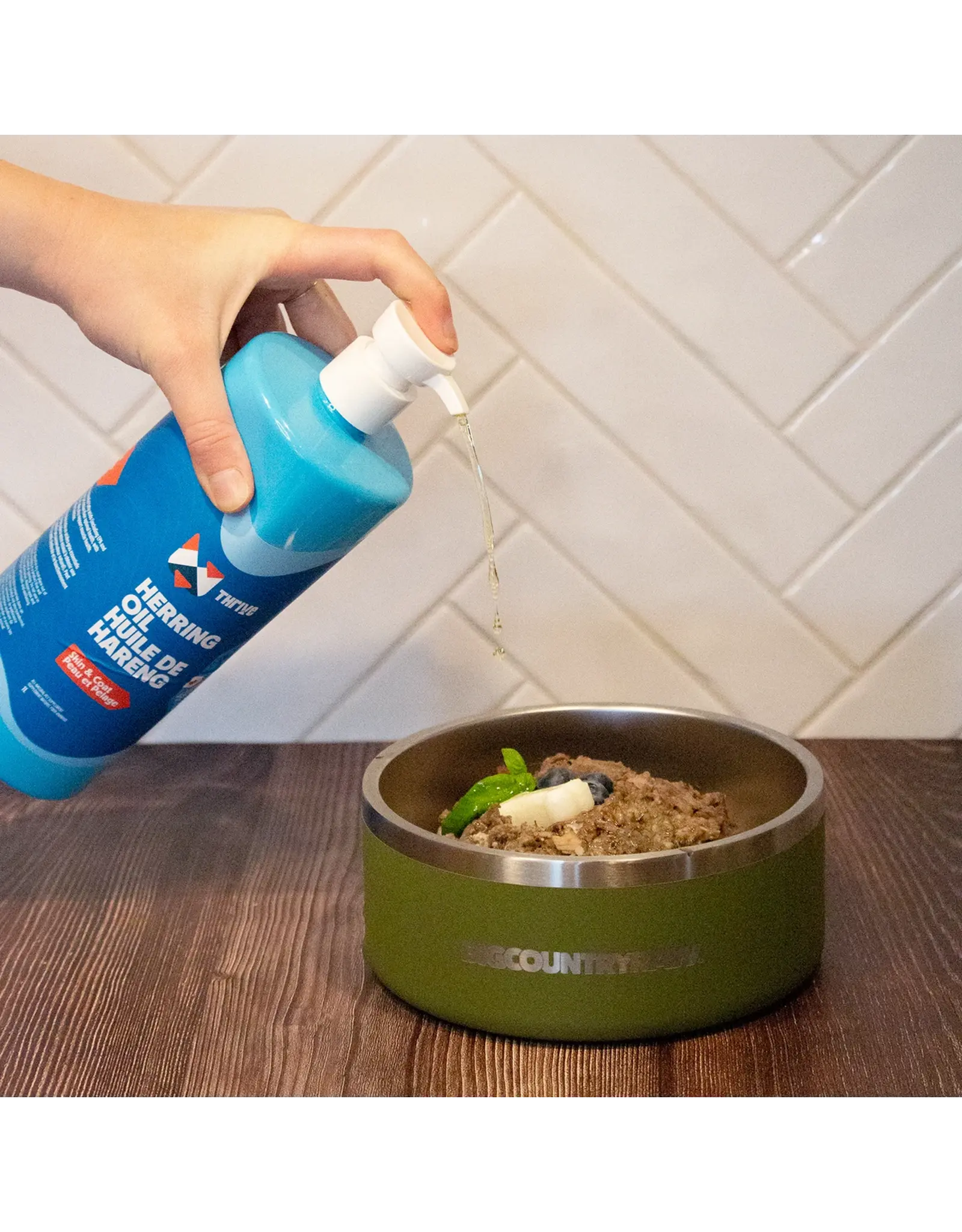 Cold water Thrive Herring Oil is particularly rich in essential fatty acids (including EPA and DHA omega 3). Herring oil will help your pet obtain their optimal health, with added vitamin E (100 I.U. per 5 ml). May support: Digestion, Skin & Coat Health, Energy Levels and Stamina, Cardiovascular Health, Muscle Health, Brain Health, Immune System Health, and Mobility.